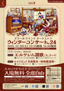 2025年12月20日(土)にウインターコンサートVol. 24を開催いたします。 \ 演奏会のご案内 / ウインターコンサートVol. 24 カルッツかわさき 2025年 12月20日 (土) 13:15開場 […]